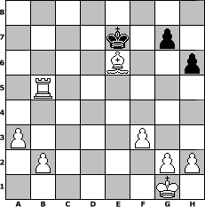 game notation in PGN-format [Event "Zwischendurch mal ein paar eigene Z"] [Site "www.myChess.de"] [Date "2009.06.25"] [Round "1"] [White "Seneca"] [Black "Matti"] [ECO "D30"] [WhitemyELO "1400"] [BlackmyELO "1465"] [Result "1-0"] [TimeControl "10/1728000"] [WhiteDays "083"] [BlackDays "100"] [MyChessNo "56926"] 1. d4 d5 2. c4 e6 3. cxd5 Qxd5 4. Nc3 Qd8 5. e4 Nc6 6. Nf3 Nf6 7. Bg5 Be7 8. Be2 h6 9. Bh4 O-O 10. O-O b6 11. e5 Nd5 12. Bxe7 Ndxe7 13. Bb5 Bb7 14. a3 a6 15. Ba4 Nf5 16. Ne2 f6 17. Rc1 Nce7 18. Qc2 Rc8 19. Bb3 Nd5 20. exf6 Nxf6 21. Bxe6+ Kh8 22. Qxf5 Rb8 23. Ne5 Be4 24. Qf4 Bh7 25. Nf7+ Rxf7 26. Bxf7 Qe7 27. Qxc7 Qxc7 28. Rxc7 Bd3 29. Re1 Rf8 30. Bc4 Bg6 31. Bxa6 Ne4 32. f3 Nd2 33. Rc8 Rxc8 34. Bxc8 Nc4 35. Nf4 Bf7 36. Nd3 Bg6 37. Ne5 Nxe5 38. dxe5 Kg8 39. e6 Kf8 40. Rc1 Ke7 41. Rc6 b5 42. Rb6 Bf5 43. Rxb5 Bxe6 44. Bxe6 1-0 position notation in FEN-format 8/4k1p1/4B2p/1R6/8/P4P2/1P4PP/6K1 - - - 0 44 Captured white pieces: Captured black pieces: Click on a captured piece in order to display the desired move!