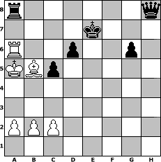 game notation in PGN-format [Event "und immer wieder Schach !"] [Site "www.myChess.de"] [Date "2009.11.06"] [Round "1"] [White "Knight"] [Black "reisender"] [ECO "A40"] [WhitemyELO "1151"] [BlackmyELO "1330"] [Result "0-1"] [TimeControl "10/864000"] [WhiteDays "39"] [BlackDays "40"] [MyChessNo "60382"] 1. d4 g6 2. e4 Bg7 3. Nc3 e5 4. dxe5 Bxe5 5. Nf3 Nc6 6. Bb5 Nge7 7. O-O a6 8. Be2 d6 9. Bg5 Be6 10. Nxe5 Nxe5 11. Bxe7 Qxe7 12. Nd5 Bxd5 13. Qxd5 c6 14. Qb3 b5 15. f4 Nd7 16. f5 O-O-O 17. fxg6 hxg6 18. Rxf7 Qxe4 19. Bd3 Qe5 20. Raf1 Qxh2+ 21. Kf2 Qh4+ 22. Ke3 Rde8+ 23. Kd2 Qg5+ 24. Kd1 Ne5 25. Ra7 Qxg2 26. Rxa6 Rh1 27. Rxh1 Qxh1+ 28. Kd2 Nf3+ 29. Kc3 Qh8+ 30. Kb4 c5+ 31. Ka5 Nd4 32. Qd5 Rd8 33. Qc6+ Nxc6+ 34. Rxc6+ Kd7 35. Bxb5 Ra8+ 36. Ra6+ Ke7 0-1 position notation in FEN-format r6q/4k3/R2p2p1/KBp5/8/8/PPP5/8 - - - 3 37 Captured white pieces: Captured black pieces: Click on a captured piece in order to display the desired move!