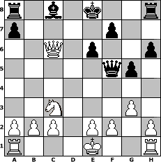 game notation in PGN-format [Event "Mit Sizialisch in den Herbst!"] [Site "www.myChess.de"] [Date "2005.09.22"] [Round "1"] [White "Baehr008"] [Black "Knight"] [ECO "B27"] [WhitemyELO "1957"] [BlackmyELO "1361"] [Result "1-0"] [TimeControl "10/1728000"] [WhiteDays "20"] [BlackDays "18"] [MyChessNo "17706"] 1. e4 c5 2. Nf3 g6 3. d4 e6 4. Nc3 cxd4 5. Qxd4 Nf6 6. Bb5 Nc6 7. Bxc6 bxc6 8. Bg5 Bg7 9. e5 h6 10. exf6 Bf8 11. Bf4 g5 12. Bd6 Bxd6 13. Qxd6 Qxf6 14. Ne5 Qf4 15. g3 Qf5 16. Nxc6 dxc6 17. Qxc6+ 1-0 position notation in FEN-format r1b1k2r/p4p2/2Q1p2p/5qp1/8/2N3P1/PPP1PP1P/R3K2R - KQkq - 0 17 Captured white pieces: Captured black pieces: Click on a captured piece in order to display the desired move!