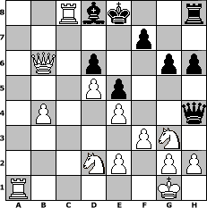 game notation in PGN-format [Event "wie w"] [Site "www.myChess.de"] [Date "2013.11.16"] [Round "1"] [White "Joschi"] [Black "Winston"] [ECO "C41"] [WhitemyELO "1574"] [BlackmyELO "1550"] [Result "1-0"] [TimeControl "10/1728000"] [WhiteDays "20"] [BlackDays "20"] [MyChessNo "91151"] 1. e4 e5 2. Nf3 d6 3. Bc4 h6 4. c3 Qe7 5. O-O Be6 6. Bxe6 Qxe6 7. d4 c6 8. Nbd2 Nd7 9. Re1 Ngf6 10. Qc2 Be7 11. Nf1 O-O-O 12. b4 b5 13. a4 Kb7 14. axb5 cxb5 15. d5 Qg4 16. Ng3 Rc8 17. Be3 a6 18. Ra3 Nb6 19. Rea1 Na4 20. Nf5 Bf8 21. Nd2 g6 22. f3 Qh5 23. Ng3 Qh4 24. c4 Be7 25. Qb3 Nd7 26. cxb5 axb5 27. Qd3 Kc7 28. Qxb5 Ndb6 29. Bxb6+ Nxb6 30. Ra7+ Kd8 31. Qxb6+ Ke8 32. Ra8 Bd8 33. Rxc8 1-0 position notation in FEN-format 2Rbk2r/5p2/1Q1p2pp/3Pp3/1P2P2q/5PN1/3NP1PP/R5K1 - - - 0 33 Captured white pieces: Captured black pieces: Click on a captured piece in order to display the desired move!