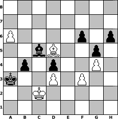 game notation in PGN-format [Event "und immer wieder Schach !"] [Site "www.myChess.de"] [Date "2009.11.06"] [Round "1"] [White "Haki"] [Black "Andreas"] [ECO "C61"] [WhitemyELO "1478"] [BlackmyELO "1519"] [Result "1/2-1/2"] [TimeControl "10/864000"] [WhiteDays "43"] [BlackDays "38"] [MyChessNo "60405"] 1. e4 e5 2. Nf3 Nc6 3. Bb5 Nd4 4. Nxd4 exd4 5. O-O c6 6. Be2 Bd6 7. g3 Bc5 8. d3 Nf6 9. h3 d6 10. Nd2 Bxh3 11. Re1 O-O 12. Nf1 Bxf1 13. Bxf1 Bb6 14. Bf4 Re8 15. Bg2 h6 16. e5 dxe5 17. Bxe5 Re6 18. Bh3 Re8 19. Bxf6 Rxe1+ 20. Qxe1 Qxf6 21. a4 Kf8 22. Qd2 Re8 23. b4 Bc7 24. Re1 Rxe1+ 25. Qxe1 Bd6 26. Bd7 Qe7 27. Qxe7+ Kxe7 28. Bc8 b6 29. b5 cxb5 30. axb5 Bb8 31. g4 Kd6 32. f3 Kc5 33. Bd7 Kb4 34. Be8 f6 35. Kg2 g5 36. Bd7 Kc3 37. Kf2 Kxc2 38. Ke2 Kc3 39. Bc6 Kb4 40. Bd7 Ka5 41. Kd1 a6 42. bxa6 b5 43. Bc8 b4 44. Kc2 Ka4 45. Bd7+ Ka3 46. Be6 Ba7 47. Bd5 Bc5 1/2-1/2 position notation in FEN-format 8/8/P4p1p/2bB2p1/1p1p2P1/k2P1P2/2K5/8 - - - 8 48 Captured white pieces: Captured black pieces: Click on a captured piece in order to display the desired move!