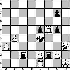 game notation in PGN-format [Event "Sommerferien 2010"] [Site "www.myChess.de"] [Date "2010.06.20"] [Round "2"] [White "Joschi"] [Black "lasker"] [ECO "C10"] [WhitemyELO "1565"] [BlackmyELO "1342"] [Result "1-0"] [TimeControl "10/2592000"] [WhiteDays "143"] [BlackDays "012"] [MyChessNo "66423"] 1. e4 e6 2. d4 d5 3. Nc3 dxe4 4. Nxe4 Nf6 5. Bg5 Be7 6. Nxf6+ Bxf6 7. Bxf6 Qxf6 8. Nf3 Nc6 9. Bb5 Bd7 10. O-O O-O 11. c3 a6 12. Ba4 b5 13. Bc2 Rfe8 14. Qd3 Qg6 15. Qd2 Qf6 16. Rfe1 Ne7 17. Ne5 Rad8 18. Nxd7 Rxd7 19. Qd3 Ng6 20. Qg3 Red8 21. Be4 Qe7 22. f4 Qd6 23. Rf1 c5 24. dxc5 Qxc5+ 25. Kh1 Rd2 26. Rab1 b4 27. cxb4 Qxb4 28. Bxg6 hxg6 29. a3 Qd4 30. b4 Rc8 31. Qf3 Rcc2 32. Rg1 Rf2 33. Qa8+ Kh7 34. Rbd1 Qxf4 35. Rd8 Kh6 36. Qxa6 Qe4 37. Rh8+ Kg5 38. Qa5+ e5 39. Qd8+ f6 40. h4+ Kf5 41. Qd7+ Kf4 42. Qh3 g5 43. hxg5 fxg5 44. Rf8+ Qf5 45. Rxf5+ Ke4 46. Re1+ 1-0 position notation in FEN-format 8/6p1/8/4pRp1/1P2k3/P6Q/2r1PrP1/4R2K - - - 2 46 Captured white pieces: Captured black pieces: Click on a captured piece in order to display the desired move!
