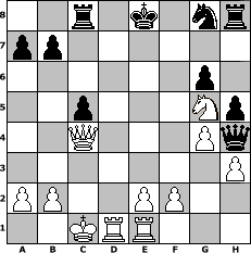 game notation in PGN-format [Event "7er3"] [Site "www.myChess.de"] [Date "2013.08.19"] [Round "1"] [White "lmilde1 (adv.)"] [Black "Duschgel"] [ECO "B12"] [WhitemyELO "1722"] [BlackmyELO "1616"] [Result "1-0"] [TimeControl "10/3456000"] [WhiteDays "34"] [BlackDays "39"] [MyChessNo "89832"] 1. e4 c6 2. d4 d5 3. e5 c5 4. c4 dxc4 5. d5 Nd7 6. Nf3 Nb6 7. Nc3 Bg4 8. h3 Bxf3 9. Qxf3 g6 10. Bf4 Bg7 11. O-O-O Bh6 12. g4 Bxf4+ 13. Qxf4 h5 14. Bxc4 Nxc4 15. Qxc4 Qc7 16. d6 Qd7 17. Nb5 Kf8 18. Nc7 Rc8 19. e6 fxe6 20. dxe7+ Qxe7 21. Nxe6+ Ke8 22. Rhe1 Qh4 23. Ng5+ 1-0 position notation in FEN-format 2r1k1nr/pp6/6p1/2p3Np/2Q3Pq/7P/PP2PP2/2KRR3 - - - 4 23 Captured white pieces: ![]() ![]() ![]() ![]() ![]() ![]() ![]() ![]() ![]() ![]() ![]() ![]() ![]() ![]() ![]() Captured black pieces: ![]() ![]() ![]() ![]() ![]() ![]() ![]() ![]() ![]() ![]() ![]() ![]() ![]() ![]() ![]() Click on a captured piece in order to display the desired move!