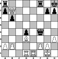 game notation in PGN-format [Event "Herbstturnier 2004"] [Site "www.myChess.de"] [Date "2004.09.02"] [Round "1"] [White "babylon148"] [Black "helrobe"] [ECO "D06"] [WhitemyELO "1515"] [BlackmyELO "1601"] [Result "1-0"] [TimeControl "10/2592000"] [WhiteDays "26"] [BlackDays "70"] [MyChessNo "6526"] 1. d4 d5 2. c4 Nf6 3. cxd5 Nxd5 4. e4 Nf6 5. Nc3 e5 6. Nf3 exd4 7. Nxd4 Bc5 8. Be3 Qe7 9. Qc2 O-O 10. Be2 Bb4 11. O-O Bxc3 12. Qxc3 Nxe4 13. Qc2 c5 14. Nb3 b6 15. Bd3 f5 16. Rfe1 Qf6 17. Nd2 Nxd2 18. Bxd2 Nc6 19. Bc3 Nd4 20. Bxd4 cxd4 21. Qc7 Qd8 22. Bc4+ Kh8 23. Qf4 Bb7 24. Rad1 Re8 25. Qxf5 Qd6 26. Bd3 Qh6 27. h3 Rf8 28. Qd7 Qf4 29. Qxb7 1-0 position notation in FEN-format r4r1k/pQ4pp/1p6/8/3p1q2/3B3P/PP3PP1/3RR1K1 - - - 0 29 Captured white pieces: ![]() ![]() ![]() ![]() ![]() ![]() ![]() ![]() ![]() ![]() ![]() ![]() ![]() ![]() ![]() Captured black pieces: ![]() ![]() ![]() ![]() ![]() ![]() ![]() ![]() ![]() ![]() ![]() ![]() ![]() ![]() ![]() Click on a captured piece in order to display the desired move!