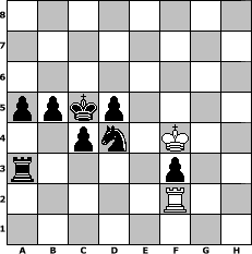 game notation in PGN-format [Event "Lapislazuli"] [Site "www.myChess.de"] [Date "2022.04.10"] [Round "1"] [White "Master1"] [Black "Mynona"] [ECO "D00"] [WhitemyELO "1318"] [BlackmyELO "1439"] [Result "0-1"] [TimeControl "10/864000"] [WhiteDays "54"] [BlackDays "50"] [MyChessNo "125226"] 1. d4 d5 2. e3 Bf5 3. Bd3 Bxd3 4. Qxd3 e6 5. Nf3 a6 6. Nbd2 c5 7. c3 c4 8. Qc2 f5 9. O-O g5 10. Ne5 Bg7 11. Nef3 Nc6 12. h3 h5 13. Re1 g4 14. hxg4 hxg4 15. Nh2 Qh4 16. Ndf1 Nf6 17. Qe2 O-O-O 18. g3 Qh3 19. f3 gxf3 20. Qxf3 Ne4 21. Re2 Rdg8 22. Qg2 Bf6 23. Qxh3 Rxh3 24. Rg2 Nxg3 25. Nxg3 Rhxg3 26. Rxg3 Rxg3+ 27. Kh1 Bg5 28. Nf1 Rh3+ 29. Kg2 Rh7 30. Bd2 Rg7 31. Ng3 Bh4 32. Be1 e5 33. a3 f4 34. Kh3 Bxg3 35. Bxg3 Rxg3+ 36. Kh4 Rxe3 37. Rb1 exd4 38. cxd4 Nxd4 39. Kg4 f3 40. Kg3 Rd3 41. Rf1 b5 42. Kf4 Kc7 43. Ke5 Kc6 44. Kf6 Rb3 45. Ke5 Kc5 46. Kf4 Rxb2 47. Ke5 Rb3 48. Kf4 Rxa3 49. Rf2 a5 0-1 position notation in FEN-format 8/8/8/ppkp4/2pn1K2/r4p2/5R2/8 - - - 0 50 Captured white pieces: Captured black pieces: Click on a captured piece in order to display the desired move!