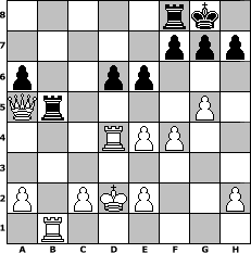 game notation in PGN-format [Event "MK Godzillas-FC 960 2016"] [Site "www.myChess.de"] [Date "2016.06.19"] [Round "1"] [Board "2"] [White "Peterlie77 (C)"] [Black "HenrySchinasky"] [ECO "B96"] [WhitemyELO "2122"] [BlackmyELO "2080"] [Result "1/2-1/2"] [TimeControl "10/2592000"] [WhiteDays "81"] [BlackDays "88"] [MyChessNo "103963"] 1. e4 c5 2. Nf3 d6 3. d4 cxd4 4. Nxd4 Nf6 5. Nc3 a6 6. Bg5 e6 7. f4 Nbd7 8. Qf3 Qc7 9. O-O-O Be7 10. g4 b5 11. Bxf6 Bxf6 12. Bxb5 Rb8 13. Bxd7+ Bxd7 14. g5 Bxd4 15. Rxd4 Qb6 16. Qd3 Qxb2+ 17. Kd2 Bb5 18. Qe3 Qa3 19. Rb1 O-O 20. Nxb5 Qa5+ 21. Qc3 Rxb5 22. Qxa5 1/2-1/2 position notation in FEN-format 5rk1/5ppp/p2pp3/Qr4P1/3RPP2/8/P1PKP2P/1R6 - - - 0 22 Captured white pieces: ![]() ![]() ![]() ![]() ![]() ![]() ![]() ![]() ![]() ![]() ![]() ![]() ![]() ![]() ![]() Captured black pieces: ![]() ![]() ![]() ![]() ![]() ![]() ![]() ![]() ![]() ![]() ![]() ![]() ![]() ![]() ![]() Click on a captured piece in order to display the desired move!