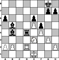 game notation in PGN-format [Event "wie w"] [Site "www.myChess.de"] [Date "2013.11.16"] [Round "1"] [White "borsti"] [Black "Robert"] [ECO "B04"] [WhitemyELO "1203"] [BlackmyELO "1495"] [Result "0-1"] [TimeControl "10/1728000"] [WhiteDays "20"] [BlackDays "18"] [MyChessNo "91170"] 1. e4 Nf6 2. e5 Nd5 3. d4 d6 4. Nf3 a6 5. Bc4 Nb6 6. Bb3 dxe5 7. Nxe5 e6 8. Nc3 N8d7 9. Ba4 Nxa4 10. Nxa4 Nxe5 11. dxe5 Qxd1+ 12. Kxd1 b5 13. Nc3 Bb7 14. f3 Rd8+ 15. Ke2 Be7 16. Rd1 O-O 17. Be3 f5 18. g3 c5 19. Rd2 Rxd2+ 20. Bxd2 Bc6 21. f4 b4 22. Nd1 Rd8 23. Ne3 Bb5+ 24. Ke1 Rd4 25. Rd1 Re4 26. Kf2 c4 27. c3 bxc3 28. Bxc3 Bc5 29. Bd2 Rd4 30. Ke2 c3+ 31. Ke1 cxd2+ 32. Rxd2 Bb4 0-1 position notation in FEN-format 6k1/6pp/p3p3/1b2Pp2/1b1r1P2/4N1P1/PP1R3P/4K3 - - - 1 33 Captured white pieces: Captured black pieces: Click on a captured piece in order to display the desired move!