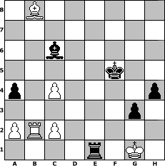 game notation in PGN-format [Event "Juli 2017"] [Site "www.myChess.de"] [Date "2017.07.12"] [Round "1"] [White "beowulf"] [Black "faustballer"] [ECO "A34"] [WhitemyELO "1415"] [BlackmyELO "1505"] [Result "0-1"] [TimeControl "10/2592000"] [WhiteDays "150"] [BlackDays "149"] [MyChessNo "108855"] 1. c4 c5 2. Nc3 a6 3. g3 e6 4. Bg2 Nf6 5. Nf3 Be7 6. d4 cxd4 7. Nxd4 Bb4 8. Bg5 h6 9. Bf4 d6 10. Qa4+ Nc6 11. Nxc6 Bxc3+ 12. bxc3 Bd7 13. Nxd8 Bxa4 14. Nxb7 O-O 15. Nc5 dxc5 16. Bxa8 Rxa8 17. O-O Ne4 18. Be3 Nxc3 19. Rfe1 Rc8 20. Bd2 Ne4 21. Ba5 g5 22. f3 Nd6 23. Rac1 f5 24. Bb6 Kf7 25. e4 fxe4 26. fxe4 e5 27. Kf2 Bc6 28. Kf3 Kg6 29. h4 Rf8+ 30. Kg2 Nxe4 31. Kg1 Nd2 32. Bxc5 Rf7 33. Re2 Nf3+ 34. Kf1 Nxh4+ 35. Rf2 Nf5 36. Rc3 h5 37. Ba3 e4 38. Bc1 Re7 39. Rb3 e3 40. Re2 Nxg3+ 41. Ke1 Nxe2 42. Kxe2 Re6 43. Bxe3 g4 44. Kf2 h4 45. Kg1 a5 46. Bf4 a4 47. Rb6 Kf5 48. Bb8 g3 49. Rb2 Re1# 0-1 position notation in FEN-format 1B6/8/2b5/5k2/p1P4p/6p1/PRP5/4r1K1 - - - 2 50 Captured white pieces: Captured black pieces: Click on a captured piece in order to display the desired move!