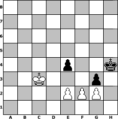 game notation in PGN-format [Event "Neue Reihe: sch"] [Site "www.myChess.de"] [Date "2009.05.15"] [Round "1"] [White "Grubengeist"] [Black "HenrySchinasky"] [ECO "C51"] [WhitemyELO "1968"] [BlackmyELO "2089"] [Result "0-1"] [TimeControl "10/2592000"] [WhiteDays "30"] [BlackDays "30"] [MyChessNo "55703"] 1. e4 e5 2. Nf3 Nc6 3. Bc4 Bc5 4. b4 Bxb4 5. c3 Be7 6. d4 exd4 7. Qb3 Na5 8. Bxf7+ Kf8 9. Qa4 Kxf7 10. Qxa5 c6 11. Qf5+ Nf6 12. e5 d6 13. e6+ Kg8 14. O-O g6 15. Qh3 d3 16. Ng5 Qa5 17. Nf7 Qh5 18. Qxh5 Nxh5 19. Rd1 Bxe6 20. Nxh8 Bc4 21. Nxg6 hxg6 22. Nd2 d5 23. Nf3 Nf6 24. Bg5 Re8 25. Re1 Ne4 26. Bxe7 Rxe7 27. Nd2 Kf7 28. Rxe4 Rxe4 29. Nxe4 dxe4 30. h4 Kf6 31. a3 Kf5 32. Rd1 b5 33. Kf1 Bb3 34. Rd2 Bc2 35. Ke1 c5 36. Rxc2 dxc2 37. Kd2 a5 38. Kxc2 Kg4 39. Kd2 b4 40. cxb4 cxb4 41. axb4 axb4 42. Ke3 b3 43. Kd2 Kxh4 44. Kc3 g5 45. Kxb3 g4 46. Kc3 g3 0-1 position notation in FEN-format 8/8/8/8/4p2k/2K3p1/4PPP1/8 - - - 0 47 Captured white pieces: ![]() ![]() ![]() ![]() ![]() ![]() ![]() ![]() ![]() ![]() ![]() ![]() ![]() ![]() ![]() Captured black pieces: ![]() ![]() ![]() ![]() ![]() ![]() ![]() ![]() ![]() ![]() ![]() ![]() ![]() ![]() ![]() Click on a captured piece in order to display the desired move!