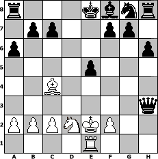game notation in PGN-format [Event "Adventszeit"] [Site "www.myChess.de"] [Date "2022.11.28"] [Round "1"] [White "Haneken"] [Black "faustballer"] [ECO "C41"] [WhitemyELO "1167"] [BlackmyELO "1560"] [Result "0-1"] [TimeControl "10/1728000"] [WhiteDays "20"] [BlackDays "20"] [MyChessNo "128253"] 1. e4 e5 2. Nf3 d6 3. d3 h6 4. Be3 a6 5. d4 exd4 6. Bxd4 Nf6 7. e5 Ng8 8. Bd3 Nc6 9. Qe2 Bg4 10. h3 Bxf3 11. gxf3 Nxd4 12. Qd2 Nxf3+ 13. Kf1 Nxd2+ 14. Nxd2 dxe5 15. Re1 Qd5 16. Bc4 Qxh1+ 17. Ke2 Qxh3 0-1 position notation in FEN-format r3kbnr/1pp2pp1/p6p/4p3/2B5/7q/PPPNKP2/4R3 - kq - 0 18 Captured white pieces: Captured black pieces: Click on a captured piece in order to display the desired move!