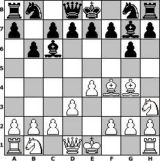 game notation in PGN-format [Event "Winterende2014"] [Site "www.myChess.de"] [Date "2014.03.06"] [Round "2"] [White "Haneken"] [Black "mudb"] [ECO "B06"] [WhitemyELO "1037"] [BlackmyELO "1111"] [Result "1-0"] [TimeControl "10/1728000"] [WhiteDays "15"] [BlackDays "09"] [MyChessNo "93404"] 1. e4 g6 2. d3 Bg7 3. Be2 b6 4. Bf4 Bb7 5. Bg4 Bc6 6. Nh3 1-0 position notation in FEN-format rn1qk1nr/p1ppppbp/1pb3p1/8/4PBB1/3P3N/PPP2PPP/RN1QK2R - KQkq - 5 6 Captured white pieces: Captured black pieces: Click on a captured piece in order to display the desired move!