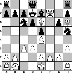 | game notation in PGN-format [Event "Die Weinprobe"] [Site "www.myChess.de"] [Date "2016.09.01"] [Round "1"] [White "wolni55"] [Black "Haneken"] [ECO "C41"] [WhitemyELO "1429"] [BlackmyELO "1047"] [Result "1-0"] [TimeControl "10/1728000"] [WhiteDays "40"] [BlackDays "35"] [MyChessNo "104763"] 1. e4 e5 2. Nf3 d6 3. Bc4 Nf6 4. d3 Bg4 5. h3 Bxf3 6. Qxf3 Nc6 7. c3 g6 8. Bg5 Be7 9. Bh6 Nh5 10. Qxf7+ Kd7 11. Be6# 1-0 position notation in FEN-format r2q3r/pppkbQ1p/2npB1pB/4p2n/4P3/2PP3P/PP2PPP1/RN2K2R - KQ - 2 11 Captured white pieces:                              Captured black pieces:                               Click on a captured piece in order to display the desired move!