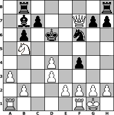 game notation in PGN-format [Event "> 1500"] [Site "www.myChess.de"] [Date "2010.03.18"] [Round "1"] [White "Winston"] [Black "commander"] [ECO "B01"] [WhitemyELO "1389"] [BlackmyELO "1172"] [Result "1-0"] [TimeControl "10/2592000"] [WhiteDays "60"] [BlackDays "00"] [MyChessNo "64063"] 1. e4 d5 2. exd5 Qxd5 3. Nc3 Qd8 4. Bc4 e6 5. d3 Nc6 6. a3 Nd4 7. Nf3 b6 8. Nxd4 Qxd4 9. O-O Bc5 10. Qf3 Rb8 11. Nb5 Qd7 12. Nxa7 Bd4 13. Bb5 Bb7 14. Bxd7+ Kxd7 15. Qxf7+ Kd6 16. Bf4+ e5 17. c3 exf4 18. cxd4 Nf6 19. Nb5+ 1-0 position notation in FEN-format 1r5r/1bp2Qpp/1p1k1n2/1N6/3P1p2/P2P4/1P2PPPP/R4RK1 - - - 2 19 Captured white pieces: Captured black pieces: Click on a captured piece in order to display the desired move!