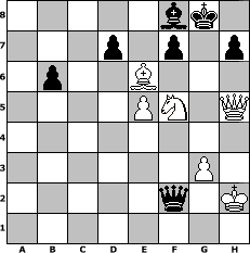 game notation in PGN-format [Event "Trotz Sturm und Regen die Figuren bewegen II"] [Site "www.myChess.de"] [Date "2025.08.15"] [Round "1"] [White "Leon"] [Black "larlinde"] [ECO "E15"] [WhitemyELO "2086"] [BlackmyELO "2166"] [Result "1/2-1/2"] [TimeControl "10/2592000"] [WhiteDays "149"] [BlackDays "065"] [MyChessNo "133592"] 1. d4 Nf6 2. c4 e6 3. Nf3 b6 4. g3 Ba6 5. Qc2 c5 6. d5 exd5 7. cxd5 Bb7 8. Bg2 Nxd5 9. O-O Nc6 10. Rd1 Be7 11. Qf5 Nf6 12. e4 g6 13. Qf4 O-O 14. e5 Nh5 15. Qc4 Qc7 16. Bh6 Na5 17. Qe2 Rfe8 18. Nc3 Rad8 19. b4 cxb4 20. Nd5 Bxd5 21. Rxd5 Ng7 22. Rd1 Qc4 23. Qd2 b3 24. axb3 Nxb3 25. Qb2 Nc5 26. Nd2 Qa6 27. Ra1 Qc8 28. Bxg7 Kxg7 29. Rxa7 Qb8 30. Qa1 Rc8 31. h4 Rc7 32. Rxc7 Qxc7 33. h5 Ne6 34. Ne4 Rd8 35. Qb2 gxh5 36. Nd6 Kg8 37. Nf5 Bf8 38. Kh2 Ra8 39. Qe2 Ra5 40. Qxh5 Rxd5 41. Bxd5 Qc2 42. Bxe6 Qxf2+ 43. Kh3 Qf1+ 44. Kh2 Qf2+ 1/2-1/2 position notation in FEN-format 5bk1/3p1p1p/1p2B3/4PN1Q/8/6P1/5q1K/8 - - - 4 45 Captured white pieces: Captured black pieces: Click on a captured piece in order to display the desired move!
