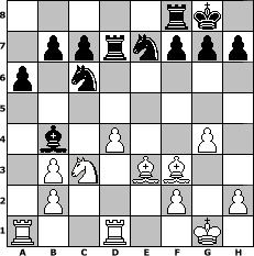 game notation in PGN-format [Event "martinus Open"] [Site "www.myChess.de"] [Date "2010.06.02"] [Round "1"] [White "martinus"] [Black "deepsabel"] [ECO "C21"] [WhitemyELO "1765"] [BlackmyELO "2024"] [Result "1/2-1/2"] [TimeControl "10/1728000"] [WhiteDays "39"] [BlackDays "27"] [MyChessNo "66029"] 1. e4 e5 2. d4 exd4 3. c3 d5 4. exd5 Qxd5 5. cxd4 Nc6 6. Nf3 Bg4 7. Be2 Bb4+ 8. Nc3 Bxf3 9. Bxf3 Qc4 10. Qb3 Qxb3 11. axb3 Nge7 12. Be3 O-O 13. O-O a6 14. Rfc1 Rad8 15. Rd1 Rd7 16. g4 1/2-1/2 position notation in FEN-format 5rk1/1pprnppp/p1n5/8/1b1P2P1/1PN1BB2/1P3P1P/R2R2K1 - - - 0 16 Captured white pieces: Captured black pieces: Click on a captured piece in order to display the desired move!