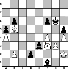 game notation in PGN-format [Event "wie w"] [Site "www.myChess.de"] [Date "2013.11.16"] [Round "1"] [White "brucybabe"] [Black "Robur"] [ECO "A85"] [WhitemyELO "1671"] [BlackmyELO "1806"] [Result "0-1"] [TimeControl "10/1728000"] [WhiteDays "20"] [BlackDays "20"] [MyChessNo "91123"] 1. d4 f5 2. c4 Nf6 3. Nc3 c6 4. Nf3 e6 5. e3 d6 6. Bd3 Be7 7. O-O O-O 8. Re1 Nbd7 9. e4 Nxe4 10. Nxe4 fxe4 11. Bxe4 d5 12. cxd5 exd5 13. Bc2 Nf6 14. Bg5 Bd6 15. Qd3 Qc7 16. Bxf6 gxf6 17. Re2 Qf7 18. Rae1 Bd7 19. a3 Rae8 20. Rxe8 Rxe8 21. Rxe8+ Bxe8 22. Qe3 Bd7 23. Nh4 Qh5 24. g3 Bh3 25. Qf3 Qxf3 26. Nxf3 Kg7 27. Nh4 Bc7 28. f4 Bb6 29. Nf3 a5 30. a4 c5 31. dxc5 Bxc5+ 32. Kh1 h6 33. Ng1 Bf1 34. h4 d4 35. Bd1 d3 36. Nf3 b6 37. Bb3 Be3 38. Bc4 h5 39. Kh2 Kg6 40. Bb5 d2 0-1 position notation in FEN-format 8/8/1p3pk1/pB5p/P4P1P/4bNP1/1P1p3K/5b2 - - - 0 41 Captured white pieces: Captured black pieces: Click on a captured piece in order to display the desired move!