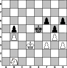 game notation in PGN-format [Event "Auf ein Neues 2"] [Site "www.myChess.de"] [Date "2021.03.20"] [Round "1"] [White "lotchi"] [Black "sprinterde"] [ECO "A00"] [WhitemyELO "1369"] [BlackmyELO "1645"] [Result "1/2-1/2"] [TimeControl "10/2592000"] [WhiteDays "210"] [BlackDays "210"] [MyChessNo "121580"] 1. Nc3 e5 2. e4 Nf6 3. Bc4 Bc5 4. h3 a6 5. d3 b5 6. Bb3 Bb7 7. Nf3 d6 8. O-O Nc6 9. Nd5 Na5 10. Nxf6+ Qxf6 11. Bg5 Qg6 12. Qd2 Nxb3 13. axb3 O-O 14. b4 Bb6 15. Re1 Bc8 16. Nh4 Qe6 17. Nf5 f6 18. Be3 Bxe3 19. Nxe3 c6 20. Qc3 Bd7 21. Ra5 d5 22. exd5 cxd5 23. d4 Rfc8 24. Qd3 Bc6 25. dxe5 Qxe5 26. c3 Rd8 27. Nc2 Qg5 28. g4 Bb7 29. Nd4 Re8 30. Ra1 Re4 31. Nf5 Qf4 32. Ne7+ Kh8 33. Nxd5 Rxe1+ 34. Rxe1 Qd6 35. Rd1 Re8 36. b3 Bxd5 37. Qxd5 Re1+ 38. Rxe1 Qxd5 39. Re8+ Qg8 40. Rxg8+ Kxg8 41. f3 Kf7 42. c4 Ke6 43. Kf2 Ke5 44. Ke3 g5 45. c5 Kd5 46. Kd3 a5 47. Kc3 axb4+ 48. Kxb4 Kc6 49. Kc3 Kxc5 50. b4+ Kd5 51. Kd3 Ke5 52. Ke3 Kd5 53. Kd3 h6 54. Kc3 Ke5 55. Kd3 Kd5 56. Kc3 Ke5 57. Kd3 Kd5 58. Kc3 Ke5 59. Kd3 Kd5 60. Kc3 Ke5 61. Kd3 1/2-1/2 position notation in FEN-format 8/8/5p1p/1p2k1p1/1P4P1/3K1P1P/8/1N6 - - - 15 61 Captured white pieces: Captured black pieces: Click on a captured piece in order to display the desired move!