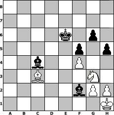 game notation in PGN-format [Event "Grünfeld zum Angewöhnen"] [Site "www.myChess.de"] [Date "2019.01.06"] [Round "1"] [White "dshortym"] [Black "jeremyt"] [ECO "D86"] [WhitemyELO "1764"] [BlackmyELO "2096"] [Result "0-1"] [TimeControl "10/2592000"] [WhiteDays "146"] [BlackDays "147"] [MyChessNo "113983"] 1. d4 Nf6 2. c4 g6 3. Nc3 d5 4. cxd5 Nxd5 5. e4 Nxc3 6. bxc3 Bg7 7. Bc4 c5 8. Ne2 O-O 9. Be3 Nc6 10. O-O cxd4 11. cxd4 Bd7 12. Rb1 Rc8 13. Qd2 Na5 14. Bd3 Nc4 15. Bxc4 Rxc4 16. Rxb7 Bc6 17. Rxa7 Bxe4 18. Rc1 Rxc1+ 19. Qxc1 Bd3 20. Qd2 Qb8 21. d5 Qb1+ 22. Qc1 Rb8 23. Qxb1 Rxb1+ 24. Nc1 f5 25. Rxe7 Bf8 26. Rc7 Be4 27. Rc8 Kf7 28. Rc7+ Kg8 29. Bd2 Bxd5 30. Rc2 Rb7 31. Kf1 Rb8 32. Kg1 Ra8 33. f3 Kf7 34. f4 Ke6 35. Ne2 Rxa2 36. Rxa2 Bc5+ 37. Kh1 Bxa2 38. Ng3 Kd5 39. Be1 Bc4 40. Bc3 Bf2 41. Be5 Ke6 42. Bc3 h5 0-1 position notation in FEN-format 8/8/4k1p1/5p1p/2b2P2/2B3N1/5bPP/7K - - - 0 43 Captured white pieces: Captured black pieces: Click on a captured piece in order to display the desired move!