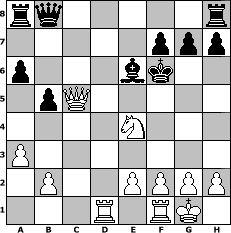 game notation in PGN-format [Event "Wrixum - Open die XI"] [Site "www.myChess.de"] [Date "2013.08.09"] [Round "1"] [White "woern63"] [Black "Joschi"] [ECO "B13"] [WhitemyELO "1872"] [BlackmyELO "1564"] [Result "1-0"] [TimeControl "10/2592000"] [WhiteDays "30"] [BlackDays "30"] [MyChessNo "89601"] 1. e4 c6 2. d4 d5 3. exd5 cxd5 4. c4 Nf6 5. cxd5 Nxd5 6. Bc4 Nc6 7. Nc3 e6 8. Nf3 Nf6 9. O-O Be7 10. a3 a6 11. Bg5 b5 12. d5 Nxd5 13. Bxd5 exd5 14. Qxd5 Bd7 15. Ne5 Nxe5 16. Bxe7 Kxe7 17. Qxe5+ Be6 18. Rad1 Qb8 19. Qc5+ Kf6 20. Ne4+ 1-0 position notation in FEN-format rq5r/5ppp/p3bk2/1pQ5/4N3/P7/1P2PPPP/3R1RK1 - - - 6 20 Captured white pieces: Captured black pieces: Click on a captured piece in order to display the desired move!