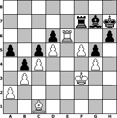 game notation in PGN-format [Event "Schachturnier Vier"] [Site "www.myChess.de"] [Date "2016.04.26"] [Round "1"] [White "Naunhofer"] [Black "sprinterde"] [ECO "B32"] [WhitemyELO "1629"] [BlackmyELO "1761"] [Result "1/2-1/2"] [TimeControl "10/1728000"] [WhiteDays "20"] [BlackDays "20"] [MyChessNo "103453"] 1. e4 c5 2. Nf3 Nc6 3. d4 Qa5+ 4. Bd2 Qb6 5. d5 Nd4 6. Bc3 Nxf3+ 7. Qxf3 d6 8. Na3 Qc7 9. Bd3 a6 10. O-O e6 11. Qg3 e5 12. Nc4 Nf6 13. Ba5 Qe7 14. Nb6 Rb8 15. h3 Nh5 16. Qe3 g6 17. Nxc8 Rxc8 18. g3 Bg7 19. Be2 Nf6 20. c4 O-O 21. Kg2 Rb8 22. Bd2 b5 23. b3 b4 24. Qd3 Ne8 25. Rae1 f5 26. f4 fxe4 27. Qxe4 Nf6 28. Qc2 e4 29. Be3 h6 30. Bc1 Rbe8 31. Bg4 Nxg4 32. hxg4 Qd7 33. Rxe4 Qxg4 34. Rfe1 Qf5 35. Qe2 Rxe4 36. Qxe4 g5 37. Qe6+ Kh8 38. Qxf5 Rxf5 39. Re8+ Kh7 40. Re6 Bf8 41. g4 Rf7 42. f5 a5 43. Kg3 Bg7 44. Kf3 1/2-1/2 position notation in FEN-format 8/5rbk/3pR2p/p1pP1Pp1/1pP3P1/1P3K2/P7/2B5 - - - 3 44 Captured white pieces: Captured black pieces: Click on a captured piece in order to display the desired move!