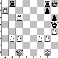 game notation in PGN-format [Event "Sommersonne "] [Site "www.myChess.de"] [Date "2016.05.14"] [Round "1"] [White "Attila89"] [Black "Steffi"] [ECO "C65"] [WhitemyELO "1580"] [BlackmyELO "1551"] [Result "0-1"] [TimeControl "10/2592000"] [WhiteDays "00"] [BlackDays "49"] [MyChessNo "103654"] 1. e4 e5 2. Nf3 Nc6 3. Bb5 Nf6 4. O-O Be7 5. Nc3 d6 6. d4 O-O 7. Bxc6 bxc6 8. dxe5 dxe5 9. Nxe5 Bb7 10. Bf4 Bd6 11. Qe2 Re8 12. Nd3 Bxf4 13. Nxf4 c5 14. f3 Rb8 15. Rfd1 Qe7 16. Rd2 h6 17. Rad1 Ba8 18. b3 Qe5 19. Ncd5 Nxd5 20. Nxd5 c6 21. Ne3 f5 22. Nxf5 Bb7 23. Qc4+ Kh7 24. Rd7 Rg8 25. c3 Bc8 26. Re7 Qf6 27. Rd6 Qg5 28. h4 Qc1+ 29. Kh2 Qf4+ 30. g3 Qc1 31. Qf1 Qc2+ 32. Kg1 Bxf5 33. exf5 Qxf5 34. Qc1 Qh5 35. Rxa7 c4 36. Rxc6 cxb3 37. axb3 Kh8 0-1 position notation in FEN-format 1r4rk/R5p1/2R4p/7q/7P/1PP2PP1/8/2Q3K1 - - - 1 38 Captured white pieces: Captured black pieces: Click on a captured piece in order to display the desired move!