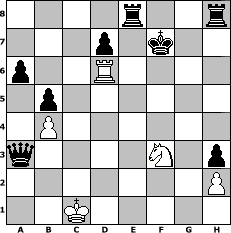 game notation in PGN-format [Event "Bernstein"] [Site "www.myChess.de"] [Date "2022.05.20"] [Round "1"] [White "Andreas1954"] [Black "Hobbykegler"] [ECO "C20"] [WhitemyELO "1377"] [BlackmyELO "1133"] [Result "0-1"] [TimeControl "10/864000"] [WhiteDays "10"] [BlackDays "09"] [MyChessNo "125823"] 1. e4 e5 2. d3 Nf6 3. Nf3 Nc6 4. Bg5 h6 5. Bxf6 Qxf6 6. Be2 Nd4 7. c3 Nxe2 8. Qxe2 Bc5 9. b4 Be7 10. O-O h5 11. Nbd2 h4 12. Nc4 Rh5 13. Rad1 h3 14. g3 b5 15. g4 Rh7 16. Na3 a6 17. d4 Bb7 18. d5 g5 19. Rd3 c6 20. Qe3 cxd5 21. exd5 Bd6 22. Qb6 Bc6 23. Re1 Kf8 24. Qe3 Qg6 25. Nxg5 Rh4 26. f3 e4 27. Rd4 Be5 28. Rxe4 Bxc3 29. Qxc3 Bxd5 30. Qh8+ Rxh8 31. Re5 Bxf3 32. Nxf3 Qxg4+ 33. Kf2 Qg2+ 34. Ke3 f6 35. Re2 Qf1 36. Rf5 Re8+ 37. Kd2 Qxe2+ 38. Kc1 Qxa2 39. Rxf6+ Kg8 40. Rg6+ Kf8 41. Rf6+ Kg8 42. Rg6+ Kf7 43. Rd6 Qxa3+ 0-1 position notation in FEN-format 4r2r/3p1k2/p2R4/1p6/1P6/q4N1p/7P/2K5 - - - 0 44 Captured white pieces: ![]() ![]() ![]() ![]() ![]() ![]() ![]() ![]() ![]() ![]() ![]() ![]() ![]() ![]() ![]() Captured black pieces: ![]() ![]() ![]() ![]() ![]() ![]() ![]() ![]() ![]() ![]() ![]() ![]() ![]() ![]() ![]() Click on a captured piece in order to display the desired move!