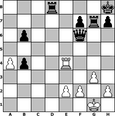 game notation in PGN-format [Event "Sommerpausen-F"] [Site "www.myChess.de"] [Date "2013.07.07"] [Round "1"] [White "gunni50"] [Black "Gauss1233"] [ECO "B30"] [WhitemyELO "1260"] [BlackmyELO "1396"] [Result "0-1"] [TimeControl "10/2592000"] [WhiteDays "104"] [BlackDays "071"] [MyChessNo "89186"] 1. e4 c5 2. Nf3 Nc6 3. Nc3 e6 4. Bb5 Qc7 5. O-O Nf6 6. d3 Bd6 7. b3 Nd4 8. a4 a6 9. g3 axb5 10. Be3 Nxf3+ 11. Qxf3 b4 12. Nb5 Qc6 13. Rac1 b6 14. Nxd6+ Qxd6 15. Bf4 e5 16. Bg5 Bb7 17. c3 O-O 18. cxb4 cxb4 19. Bxf6 gxf6 20. Qg4+ Kh8 21. Rcd1 Rg8 22. Qh4 Qe6 23. d4 exd4 24. Rxd4 Qxb3 25. Qxf6+ Rg7 26. Rxd7 Bxe4 27. Re1 Qf3 28. Rd8+ Rxd8 29. Rxe4 Qxf6 0-1 position notation in FEN-format 3r3k/5prp/1p3q2/8/Pp2R3/6P1/4PP1P/6K1 - - - 0 30 Captured white pieces: Captured black pieces: Click on a captured piece in order to display the desired move!