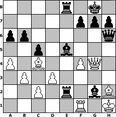 game notation in PGN-format [Event "Trotz Sturm und Regen die Figuren bewegen II"] [Site "www.myChess.de"] [Date "2025.08.15"] [Round "1"] [White "Hobbykegler"] [Black "kalle"] [ECO "B50"] [WhitemyELO "1016"] [BlackmyELO "1623"] [Result "0-1"] [TimeControl "10/2592000"] [WhiteDays "53"] [BlackDays "74"] [MyChessNo "133582"] 1. e4 c5 2. Nf3 d6 3. Bc4 e6 4. O-O Nc6 5. Qe2 Be7 6. d3 Nf6 7. Bf4 O-O 8. Nc3 a6 9. a4 b6 10. Rad1 Bb7 11. b3 Re8 12. h4 d5 13. exd5 exd5 14. Nxd5 Nxd5 15. Bg3 Nc3 16. Qe1 Bf6 17. Qd2 Nxd1 18. Qxd1 Nd4 19. Nxd4 Bxd4 20. Qg4 Qf6 21. Kh1 Re7 22. f3 Rae8 23. h5 Re2 24. h6 Qxh6+ 25. Bh2 Be5 26. f4 Bxg2+ 0-1 position notation in FEN-format 4r1k1/5ppp/pp5q/2p1b3/P1B2PQ1/1P1P4/2P1r1bB/5R1K - - - 0 27 Captured white pieces: Captured black pieces: Click on a captured piece in order to display the desired move!