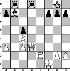 game notation in PGN-format [Event "Die letzten Sommertage!!! Teil2"] [Site "www.myChess.de"] [Date "2009.09.14"] [Round "1"] [White "Schachfedi"] [Black "Helmut48"] [ECO "C47"] [WhitemyELO "1847"] [BlackmyELO "1769"] [Result "1/2-1/2"] [TimeControl "10/864000"] [WhiteDays "21"] [BlackDays "30"] [MyChessNo "59022"] 1. e4 e5 2. Nf3 Nc6 3. Nc3 Nf6 4. d4 exd4 5. Nxd4 Bb4 6. Nxc6 bxc6 7. Bd3 d5 8. Bd2 O-O 9. O-O Rb8 10. exd5 cxd5 11. a3 Bd6 12. Nb5 Be5 13. Bb4 Re8 14. c3 c6 15. f4 Qb6+ 16. Kh1 Bc7 17. Nxc7 Qxc7 18. c4 c5 19. Bd2 dxc4 20. Bxc4 Bb7 21. Bc3 Qc6 22. Rf2 Ne4 23. Re2 Qh6 24. Kg1 Nxc3 25. bxc3 Qxf4 26. Qd3 Red8 27. Rf1 Qxf1+ 28. Kxf1 1/2-1/2 position notation in FEN-format 1r1r2k1/pb3ppp/8/2p5/2B5/P1PQ4/4R1PP/5K2 - - - 0 28 Captured white pieces: ![]() ![]() ![]() ![]() ![]() ![]() ![]() ![]() ![]() ![]() ![]() ![]() ![]() ![]() ![]() Captured black pieces: ![]() ![]() ![]() ![]() ![]() ![]() ![]() ![]() ![]() ![]() ![]() ![]() ![]() ![]() ![]() Click on a captured piece in order to display the desired move!