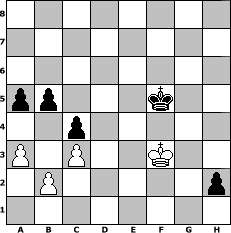 game notation in PGN-format [Event "Novemberturnier"] [Site "www.myChess.de"] [Date "2004.11.04"] [Round "1"] [White "UPS"] [Black "NoBody"] [ECO "B06"] [WhitemyELO "1493"] [BlackmyELO "1781"] [Result "0-1"] [TimeControl "10/2592000"] [WhiteDays "173"] [BlackDays "180"] [MyChessNo "7794"] 1. e4 g6 2. d4 Bg7 3. Nf3 d6 4. Be3 Nf6 5. Bd3 O-O 6. O-O c6 7. h3 Nbd7 8. c3 Qc7 9. Nbd2 e5 10. Qc2 Re8 11. Rfe1 d5 12. exd5 Nxd5 13. dxe5 Nxe5 14. Nxe5 Qxe5 15. Nf3 Qh5 16. Nh2 Nxe3 17. fxe3 Qg5 18. Nf3 Qg3 19. Qf2 Qxf2+ 20. Kxf2 Bd7 21. Rad1 Re7 22. Re2 Rae8 23. e4 Be6 24. a3 Bb3 25. Rde1 a6 26. Nd2 Be6 27. Bc4 Bh6 28. Bxe6 Rxe6 29. Nf3 c5 30. g4 Bf4 31. Ng1 b5 32. h4 h6 33. Nh3 Be5 34. Rd1 f5 35. gxf5 gxf5 36. Kf3 Bf6 37. Rg2+ Kh8 38. Rd5 Rxe4 39. Rg6 Re3+ 40. Kg2 Rg8 41. Rxg8+ Kxg8 42. Rxf5 Bxh4 43. Nf4 Rg3+ 44. Kf1 Rf3+ 45. Kg2 Rf2+ 46. Kh3 Bg5 47. Kg4 Rxf4+ 48. Rxf4 Bxf4 49. Kxf4 c4 50. Kg4 Kg7 51. Kh5 a5 52. Kg4 Kg6 53. Kf4 h5 54. Kf3 Kg5 55. Kg3 h4+ 56. Kf3 Kf5 57. Ke3 h3 58. Kf3 h2 0-1 position notation in FEN-format 8/8/8/pp3k2/2p5/P1P2K2/1P5p/8 - - - 0 59 Captured white pieces: Captured black pieces: Click on a captured piece in order to display the desired move!