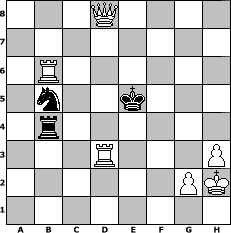 game notation in PGN-format [Event "Advents Special"] [Site "www.myChess.de"] [Date "2016.11.24"] [Round "1"] [White "wolni55"] [Black "borsti"] [ECO "C55"] [WhitemyELO "1410"] [BlackmyELO "1230"] [Result "1-0"] [TimeControl "10/1728000"] [WhiteDays "20"] [BlackDays "20"] [MyChessNo "105781"] 1. e4 e5 2. Nf3 Nc6 3. Bc4 Nf6 4. d3 Bc5 5. O-O d6 6. h3 Qe7 7. c3 Be6 8. Bxe6 Qxe6 9. a4 a5 10. Nbd2 h6 11. Nh4 O-O-O 12. Nc4 Nh7 13. Nf5 Rdg8 14. Qf3 Ng5 15. Qg4 Kb8 16. Bxg5 hxg5 17. Qxg5 Qg6 18. Qxg6 fxg6 19. Ng3 Rf8 20. Kh1 Bxf2 21. Ne2 Rf6 22. Ng1 Bxg1 23. Kxg1 Ne7 24. Nxa5 b6 25. Nc4 g5 26. b4 Kb7 27. b5 Rhf8 28. Rfd1 Rf2 29. a5 Rc2 30. axb6 cxb6 31. Nxd6+ Kc7 32. Nc4 Ng6 33. Ra7+ Kc8 34. Rxg7 Nh4 35. Rxg5 Rff2 36. Ne3 Rfe2 37. Nxc2 Rxc2 38. c4 Kd7 39. d4 Rxc4 40. Rxe5 Rb4 41. Rg5 Ke6 42. Kh2 Kf6 43. Rd5 Ng6 44. Rd6+ Kg5 45. Rxb6 Nf4 46. e5 Ne2 47. d5 Nc3 48. Rd3 Nxb5 49. d6 Kf5 50. d7 Kxe5 51. d8=Q 1-0 position notation in FEN-format 3Q4/8/1R6/1n2k3/1r6/3R3P/6PK/8 - - - 0 51 Captured white pieces: Captured black pieces: Click on a captured piece in order to display the desired move!