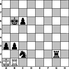 game notation in PGN-format [Event "Wrixum - Open die I."] [Site "www.myChess.de"] [Date "2004.12.11"] [Round "1"] [White "Master1"] [Black "rikilatic"] [ECO "C45"] [WhitemyELO "1302"] [BlackmyELO "1563"] [Result "0-1"] [TimeControl "10/2592000"] [WhiteDays "30"] [BlackDays "30"] [MyChessNo "8729"] 1. e4 e5 2. Nf3 Nc6 3. d4 exd4 4. Nxd4 Nxd4 5. Qxd4 c6 6. Bc4 d6 7. e5 d5 8. Be2 Bf5 9. Bg4 Bxc2 10. Bd1 Bxb1 11. Rxb1 Qa5+ 12. Bd2 Qxa2 13. Bc2 Qa6 14. Bd3 b5 15. Bb4 Bxb4+ 16. Qxb4 Qb6 17. Rc1 a5 18. Qd6 Rc8 19. e6 Qc7 20. exf7+ Kxf7 21. Qc5 Qe7+ 22. Qe3 Qxe3+ 23. fxe3 Nf6 24. O-O Rhe8 25. Rfe1 a4 26. Kf2 Ng4+ 27. Kg3 Rxe3+ 28. Rxe3 Nxe3 29. Bxh7 g6 30. Rc3 d4 31. Rc5 Kg7 32. Bxg6 Kxg6 33. Kf4 Nxg2+ 34. Ke4 Ne1 35. Kxd4 Nf3+ 36. Ke4 Nxh2 37. Kf4 Kf6 38. Ke3 Ng4+ 39. Kf4 Nf2 40. Ke3 Nd1+ 41. Kd4 Nxb2 42. Kc3 Nc4 43. Kb4 a3 44. Kb3 Ke6 45. Ka2 Kd6 46. Rh5 Kc7 47. Rh7+ Kb6 48. Kb3 Rg8 49. Ka2 Rg2+ 50. Ka1 b4 51. Rd7 b3 52. Rd1 Ne3 53. Rb1 Nc2# 0-1 position notation in FEN-format 8/8/1kp5/8/8/pp6/2n3r1/KR6 - - - 4 54 Captured white pieces: Captured black pieces: Click on a captured piece in order to display the desired move!