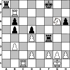 game notation in PGN-format [Event "Mannschaftsturnier der letzen Mohikan3er"] [Site "www.myChess.de"] [Date "2018.06.01"] [Round "1"] [White "miu"] [Black "hape50"] [ECO "D30"] [WhitemyELO "1553"] [BlackmyELO "1283"] [Result "1-0"] [TimeControl "10/2592000"] [WhiteDays "90"] [BlackDays "80"] [MyChessNo "112281"] 1. d4 d5 2. c4 e6 3. Nf3 h6 4. Nc3 a6 5. b3 Nf6 6. e3 Bb4 7. Bb2 Ne4 8. Rc1 O-O 9. Bd3 f5 10. O-O Bxc3 11. Bxc3 Rf7 12. Bb2 b6 13. Ne5 Rf6 14. cxd5 exd5 15. Qc2 Bb7 16. Qxc7 Qxc7 17. Rxc7 Nd6 18. Ba3 Nb5 19. Bxb5 axb5 20. Rxb7 Nc6 21. Be7 Nxe7 22. Rxe7 Rxa2 23. Rb1 Kf8 24. Rd7 f4 25. exf4 Ke8 26. Rxg7 Rxf4 27. Rc1 Kf8 28. Rb7 Ra8 29. Ng6+ 1-0 position notation in FEN-format r4k2/1R6/1p4Np/1p1p4/3P1r2/1P6/3P1PPP/2R3K1 - - - 5 29 Captured white pieces: Captured black pieces: Click on a captured piece in order to display the desired move!
