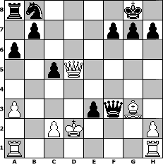 game notation in PGN-format [Event "K"] [Site "www.myChess.de"] [Date "2004.04.28"] [Round "1"] [White "Knight"] [Black "Nightflight"] [ECO "D00"] [WhitemyELO "1478"] [BlackmyELO "1605"] [Result "0-1"] [TimeControl "10/3456000"] [WhiteDays "120"] [BlackDays "108"] [MyChessNo "4206"] 1. d4 d5 2. e4 dxe4 3. Nc3 Nf6 4. Bf4 e6 5. Nb5 Nd5 6. Bg3 a6 7. Nc3 Bb4 8. Nge2 O-O 9. a3 Bxc3+ 10. Nxc3 Nxc3 11. bxc3 c5 12. Bc4 Qa5 13. Qd2 Rd8 14. d5 exd5 15. Bxd5 Rxd5 16. Qxd5 Qxc3+ 17. Ke2 Bg4+ 18. f3 Bxf3+ 19. gxf3 Qxf3+ 20. Kd2 e3+ 0-1 position notation in FEN-format rn4k1/1p3ppp/p7/2pQ4/8/P3pqB1/2PK3P/R6R - - - 0 21 Captured white pieces: ![]() ![]() ![]() ![]() ![]() ![]() ![]() ![]() ![]() ![]() ![]() ![]() ![]() ![]() ![]() Captured black pieces: ![]() ![]() ![]() ![]() ![]() ![]() ![]() ![]() ![]() ![]() ![]() ![]() ![]() ![]() ![]() Click on a captured piece in order to display the desired move!