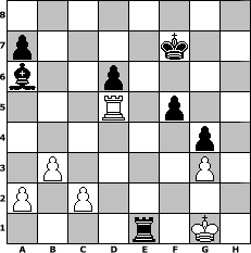 game notation in PGN-format [Event "Mittelklasse-Turnier"] [Site "www.myChess.de"] [Date "2007.10.20"] [Round "1"] [White "Helmut48"] [Black "tecker2010"] [ECO "C65"] [WhitemyELO "1416"] [BlackmyELO "1504"] [Result "0-1"] [TimeControl "10/864000"] [WhiteDays "10"] [BlackDays "10"] [MyChessNo "39098"] 1. e4 e5 2. Nf3 Nc6 3. Bb5 Nf6 4. Bxc6 bxc6 5. Nc3 d5 6. exd5 cxd5 7. Nxe5 Qe7 8. Qe2 Qe6 9. Nb5 Bd6 10. Nxd6+ cxd6 11. Nf3 Qxe2+ 12. Kxe2 O-O 13. Re1 Re8+ 14. Kf1 Ba6+ 15. Kg1 Rxe1+ 16. Nxe1 Re8 17. Nf3 Re2 18. h3 Ne4 19. b3 g5 20. Bb2 h5 21. Bd4 g4 22. hxg4 hxg4 23. Ne1 Rxd2 24. Be3 Re2 25. g3 Nxg3 26. fxg3 Rxe3 27. Kf2 Re2+ 28. Kg1 f5 29. Rd1 Kf7 30. Rxd5 Rxe1+ 0-1 position notation in FEN-format 8/p4k2/b2p4/3R1p2/6p1/1P4P1/P1P5/4r1K1 - - - 0 31 Captured white pieces: Captured black pieces: Click on a captured piece in order to display the desired move!