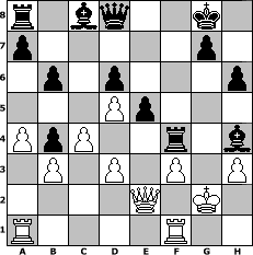 game notation in PGN-format [Event "CAISSA.COM IS DEAD TO ME!"] [Site "www.myChess.de"] [Date "2020.03.28"] [Round "1"] [White "lotchi"] [Black "martinus"] [ECO "B20"] [WhitemyELO "1273"] [BlackmyELO "1575"] [Result "0-1"] [TimeControl "10/2592000"] [WhiteDays "30"] [BlackDays "30"] [MyChessNo "117681"] 1. e4 c5 2. c4 Nc6 3. Nf3 d6 4. Nc3 Nf6 5. h3 e6 6. d3 Be7 7. a4 O-O 8. Be3 h6 9. Be2 b6 10. O-O e5 11. g4 Bb7 12. Nd5 Nxd5 13. exd5 Nb4 14. Bd2 f5 15. b3 fxg4 16. Bxb4 gxf3 17. Bxf3 cxb4 18. Qd2 Rxf3 19. Kg2 Rf4 20. f3 Bh4 21. Qe2 Bc8 0-1 position notation in FEN-format r1bq2k1/p5p1/1p1p3p/3Pp3/PpP2r1b/1P1P1P1P/4Q1K1/R4R2 - - - 3 22 Captured white pieces: Captured black pieces: Click on a captured piece in order to display the desired move!