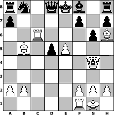 game notation in PGN-format [Event "November-Open 1/6"] [Site "www.myChess.de"] [Date "2007.11.05"] [Round "1"] [White "kischok46"] [Black "brucybabe"] [ECO "A06"] [WhitemyELO "2057"] [BlackmyELO "1557"] [Result "1-0"] [TimeControl "10/1728000"] [WhiteDays "20"] [BlackDays "20"] [MyChessNo "39439"] 1. Nf3 d5 2. d4 Nf6 3. e3 e6 4. c4 c5 5. cxd5 Nxd5 6. e4 Nf6 7. Nc3 cxd4 8. Nxd4 Be7 9. e5 Nd5 10. Bb5+ Bd7 11. Nxd5 exd5 12. O-O Bc6 13. Qg4 g6 14. Bh6 Bc5 15. Nxc6 bxc6 16. Rac1 Bf8 17. Rxc6 1-0 position notation in FEN-format rn1qkb1r/p4p1p/2R3pB/1B1pP3/6Q1/8/PP3PPP/5RK1 - kq - 0 17 Captured white pieces: ![]() ![]() ![]() ![]() ![]() ![]() ![]() ![]() ![]() ![]() ![]() ![]() ![]() ![]() ![]() Captured black pieces: ![]() ![]() ![]() ![]() ![]() ![]() ![]() ![]() ![]() ![]() ![]() ![]() ![]() ![]() ![]() Click on a captured piece in order to display the desired move!