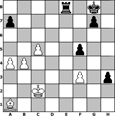 game notation in PGN-format [Event "Make myChess great again...."] [Site "www.myChess.de"] [Date "2017.02.11"] [Round "1"] [White "shan"] [Black "wolni55"] [ECO "C40"] [WhitemyELO "1336"] [BlackmyELO "1452"] [Result "0-1"] [TimeControl "10/864000"] [WhiteDays "40"] [BlackDays "32"] [MyChessNo "106853"] 1. e4 e5 2. Nf3 d5 3. exd5 Qxd5 4. Nc3 Qe6 5. Bb5+ c6 6. Ba4 Bd6 7. O-O Nf6 8. d4 e4 9. d5 Qf5 10. Re1 O-O 11. Nd4 Qg6 12. dxc6 Nxc6 13. Nxc6 Bxh2+ 14. Kf1 bxc6 15. Bxc6 Rb8 16. Nxe4 Bb7 17. Bxb7 Rxb7 18. Ng3 Bxg3 19. fxg3 Qxg3 20. Qf3 Qxf3+ 21. gxf3 h6 22. Re2 Rc8 23. c3 Nh5 24. a4 Ng3+ 25. Kf2 Nxe2 26. Kxe2 Re8+ 27. Kd2 Rbe7 28. Kc2 Re1 29. b4 h5 30. Bb2 Rxa1 31. Bxa1 f5 32. c4 h4 33. c5 h3 0-1 position notation in FEN-format 4r1k1/p5p1/8/2P2p2/PP6/5P1p/2K5/B7 - - - 0 34 Captured white pieces: Captured black pieces: Click on a captured piece in order to display the desired move!