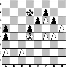 game notation in PGN-format [Event "?"] [Site "www.myChess.de"] [Date "2021.10.09"] [Round "?"] [White "darbya@"] [Black "ndj"] [ECO "B23"] [WhitemyELO "1500"] [BlackmyELO "1474"] [Result "1-0"] [TimeControl "10/864000"] [WhiteDays "04"] [BlackDays "10"] [MyChessNo "123231"] 1. e4 c5 2. Nc3 d6 3. Bb5+ Bd7 4. Bxd7+ Nxd7 5. f4 g6 6. d3 e6 7. Nf3 Ne7 8. g4 Bg7 9. Nb5 Qa5+ 10. Nc3 Bxc3+ 11. bxc3 Qxc3+ 12. Bd2 Qa3 13. Qb1 b6 14. Bc1 Qa4 15. Qb3 b5 16. Qxa4 bxa4 17. Rb1 Rb8 18. Rxb8+ Nxb8 19. Bb2 Rg8 20. e5 d5 21. Ba3 Na6 22. Ke2 Kd7 23. Rb1 Kc6 24. d4 Re8 25. dxc5 Rb8 26. Rxb8 Nxb8 27. Ng5 Na6 28. Nxh7 Ng8 29. Nf6 Nxf6 30. exf6 Nxc5 31. Bxc5 Kxc5 32. Kd3 Kd6 33. Kd4 a5 34. h4 Kd7 35. h5 1-0 position notation in FEN-format 8/3k1p2/4pPp1/p2p3P/p2K1PP1/8/P1P5/8 - - - 0 35 Captured white pieces: Captured black pieces: Click on a captured piece in order to display the desired move!