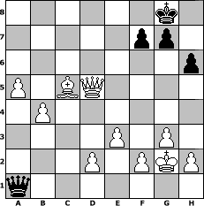 game notation in PGN-format [Event "Energiekrise"] [Site "www.myChess.de"] [Date "2022.10.29"] [Round "1"] [White "peter58"] [Black "Master1"] [ECO "E00"] [WhitemyELO "1500"] [BlackmyELO "1345"] [Result "1-0"] [TimeControl "10/1728000"] [WhiteDays "19"] [BlackDays "11"] [MyChessNo "127785"] 1. d4 Nf6 2. c4 e6 3. a3 d5 4. Nf3 c6 5. Nc3 c5 6. e3 cxd4 7. Qxd4 b6 8. b4 Nc6 9. Qd1 Be7 10. cxd5 Nxd5 11. Nxd5 exd5 12. Bb5 Bd7 13. Bb2 a6 14. Be2 O-O 15. O-O Be6 16. Rc1 Rc8 17. Bxa6 Ra8 18. Bb7 Rb8 19. Bxc6 b5 20. Nd4 Bf6 21. Rc5 Bxd4 22. Bxd4 h6 23. Bxb5 Bd7 24. Bxd7 Qxd7 25. Qb3 Rb5 26. a4 Rxc5 27. Bxc5 Rd8 28. Rd1 Qe6 29. a5 Qc6 30. g3 Qf6 31. Rxd5 Rxd5 32. Qxd5 Qa1+ 33. Kg2 1-0 position notation in FEN-format 6k1/5pp1/7p/P1BQ4/1P6/4P1P1/3P1PKP/q7 - - - 2 33 Captured white pieces: Captured black pieces: Click on a captured piece in order to display the desired move!