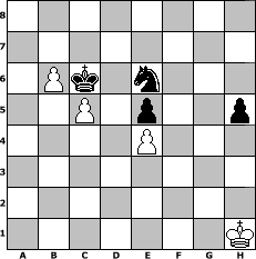 game notation in PGN-format [Event "Gl"] [Site "www.myChess.de"] [Date "2014.08.01"] [Round "2"] [White "Andylein1989"] [Black "peter58"] [ECO "B41"] [WhitemyELO "1531"] [BlackmyELO "1490"] [Result "0-1"] [TimeControl "10/2592000"] [WhiteDays "120"] [BlackDays "176"] [MyChessNo "95328"] 1. e4 c5 2. Nf3 e6 3. d4 Be7 4. c3 a6 5. Bd3 d6 6. O-O Nc6 7. Re1 Nf6 8. Bc2 b5 9. Nbd2 O-O 10. Nf1 e5 11. dxe5 dxe5 12. Bd2 h6 13. h3 Be6 14. Ng3 Qc8 15. Kh2 Nh7 16. Qc1 Qd8 17. Nh5 Bg5 18. Bxg5 Nxg5 19. Nxg5 Qxg5 20. Qxg5 hxg5 21. Re3 Rad8 22. Re2 Bc4 23. Re3 Rd2 24. Bb3 Rxf2 25. Bxc4 bxc4 26. Rb1 Rd8 27. b3 Rdd2 28. Rg3 f6 29. h4 g6 30. hxg5 gxh5 31. gxf6+ Kf7 32. bxc4 Rxf6 33. Rb7+ Kf8 34. Rbg7 Ne7 35. Rh7 Rxa2 36. Rgg7 Ng6 37. Ra7 Kg8 38. Rhc7 Nf4 39. Ra8+ Rf8 40. Rxf8+ Kxf8 41. Rxc5 Rxg2+ 42. Kh1 Rg5 43. Ra5 Ke7 44. Rxa6 Kd7 45. c5 Ne6 46. Rd6+ Ke7 47. Rd5 Nf4 48. Rd6 Rg6 49. Rb6 Rxb6 50. cxb6 Kd7 51. c4 Kc6 52. c5 Ne6 0-1 position notation in FEN-format 8/8/1Pk1n3/2P1p2p/4P3/8/8/7K - - - 1 53 Captured white pieces: Captured black pieces: Click on a captured piece in order to display the desired move!