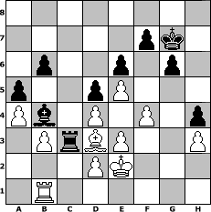 game notation in PGN-format [Event "Freibier f"] [Site "www.myChess.de"] [Date "2006.11.11"] [Round "1"] [White "Seneca"] [Black "Sherlock6834"] [ECO "D85"] [WhitemyELO "1711"] [BlackmyELO "1600"] [Result "1/2-1/2"] [TimeControl "10/864000"] [WhiteDays "11"] [BlackDays "34"] [MyChessNo "29990"] 1. d4 Nf6 2. c4 g6 3. Nc3 d5 4. cxd5 Nxd5 5. e4 Nb6 6. Nf3 Bg7 7. Be3 Bg4 8. Be2 O-O 9. O-O c6 10. e5 Bxf3 11. Bxf3 e6 12. Qe2 Nd5 13. Nxd5 cxd5 14. a3 Nc6 15. h3 Rc8 16. Rac1 Na5 17. Rxc8 Qxc8 18. Rc1 Qd7 19. Qc2 Nc4 20. Be2 Nxe3 21. fxe3 h5 22. Kf2 Rb8 23. b3 Bf8 24. a4 Ba3 25. Ra1 Bb4 26. Bb5 Qd8 27. Kf3 Rc8 28. Qd1 Rc3 29. Rb1 a6 30. Bf1 Qg5 31. Bd3 h4 32. Qf1 Qg3+ 33. Ke2 b6 34. Qf3 Qxf3+ 35. gxf3 a5 36. f4 Kg7 1/2-1/2 position notation in FEN-format 8/5pk1/1p2p1p1/p2pP3/Pb1P1P1p/1PrBP2P/3PK3/1R6 - - - 1 37 Captured white pieces: Captured black pieces: Click on a captured piece in order to display the desired move!