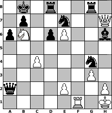 game notation in PGN-format [Event "3. Norderstedter DENK MAL Open 2012"] [Site "www.myChess.de"] [Date "2012.02.08"] [Round "1"] [White "BobbyF4"] [Black "Schachfedi"] [ECO "C37"] [WhitemyELO "1531"] [BlackmyELO "1797"] [Result "0-1"] [TimeControl "10/2592000"] [WhiteDays "30"] [BlackDays "24"] [MyChessNo "79840"] 1. e4 e5 2. f4 exf4 3. Nf3 g5 4. Bc4 Nc6 5. O-O g4 6. d4 gxf3 7. Bxf4 Qf6 8. Bxf7+ Qxf7 9. Bxc7 d6 10. Rxf3 Qxc7 11. Nc3 Qg7 12. Nb5 a6 13. Rg3 Qf7 14. Rf3 Qe7 15. Nc3 Qg7 16. e5 Bg4 17. Nd5 Bxf3 18. Qxf3 O-O-O 19. e6 Qxd4+ 20. Kh1 Qxb2 21. Rf1 Nge7 22. c4 Qxa2 23. Nb6+ Kc7 24. Nd5+ Kb8 25. Nb6 Ne5 26. Qe4 Rg8 27. g3 Ng4 28. Qxh7 Bh6 0-1 position notation in FEN-format 1k1r2r1/1p2n2Q/pN1pP2b/8/2P3n1/6P1/q3P2P/5R1K - - - 1 29 Captured white pieces: ![]() ![]() ![]() ![]() ![]() ![]() ![]() ![]() ![]() ![]() ![]() ![]() ![]() ![]() ![]() Captured black pieces: ![]() ![]() ![]() ![]() ![]() ![]() ![]() ![]() ![]() ![]() ![]() ![]() ![]() ![]() ![]() Click on a captured piece in order to display the desired move!