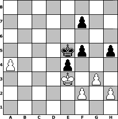 game notation in PGN-format [Event "Sommerturnier 2"] [Site "www.myChess.de"] [Date "2011.07.17"] [Round "1"] [White "Joschi"] [Black "beowulf"] [ECO "B32"] [WhitemyELO "1585"] [BlackmyELO "1455"] [Result "1-0"] [TimeControl "10/1728000"] [WhiteDays "20"] [BlackDays "20"] [MyChessNo "75131"] 1. e4 c5 2. Nf3 Nc6 3. d4 cxd4 4. Nxd4 e5 5. Nb5 Nf6 6. N1c3 a6 7. Nd6+ Bxd6 8. Qxd6 Qe7 9. Qxe7+ Nxe7 10. Bg5 b5 11. Bxf6 gxf6 12. Bd3 Bb7 13. a3 d5 14. exd5 Nxd5 15. Be4 Rd8 16. Nxd5 Bxd5 17. Bxd5 Rxd5 18. Rd1 Rxd1+ 19. Kxd1 Ke7 20. Ke2 Rg8 21. g3 Rd8 22. Rd1 Rxd1 23. Kxd1 Kd6 24. Kd2 Kd5 25. Kd3 e4+ 26. Ke3 Ke5 27. b3 f5 28. c4 h5 29. cxb5 axb5 30. a4 bxa4 31. bxa4 1-0 position notation in FEN-format 8/5p2/8/4kp1p/P3p3/4K1P1/5P1P/8 - - - 0 31 Captured white pieces: Captured black pieces: Click on a captured piece in order to display the desired move!