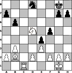 game notation in PGN-format [Event "Freibier f"] [Site "www.myChess.de"] [Date "2006.11.11"] [Round "1"] [White "Seneca"] [Black "bluescreenlover"] [ECO "E10"] [WhitemyELO "1711"] [BlackmyELO "1470"] [Result "1-0"] [TimeControl "10/864000"] [WhiteDays "18"] [BlackDays "15"] [MyChessNo "30023"] 1. d4 Nf6 2. c4 e6 3. Nf3 d5 4. cxd5 Nxd5 5. e3 Bd6 6. Bd3 O-O 7. O-O c5 8. Nc3 Nc6 9. Nxd5 exd5 10. dxc5 Bxc5 11. Qc2 Qf6 12. Qxc5 Rd8 13. Rb1 Bg4 14. Be2 Rac8 15. Qc3 Qf5 16. Qd3 Qe4 17. Qxe4 dxe4 18. Nd4 Bxe2 19. Nxe2 f5 20. b3 Rd5 21. Nf4 Rc5 22. Bb2 Nd8 23. Rbc1 b6 24. Rxc5 Rxc5 25. Rc1 Rd5 26. Nxd5 1-0 position notation in FEN-format 3n2k1/p5pp/1p6/3N1p2/4p3/1P2P3/PB1P1PPP/2R3K1 - - - 0 26 Captured white pieces: Captured black pieces: Click on a captured piece in order to display the desired move!