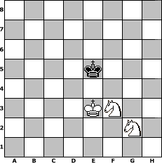 game notation in PGN-format [Event "7er2"] [Site "www.myChess.de"] [Date "2015.11.13"] [Round "1"] [White "sprinterde"] [Black "atlantis"] [ECO "B21"] [WhitemyELO "1766"] [BlackmyELO "1504"] [Result "1/2-1/2"] [TimeControl "10/3456000"] [WhiteDays "239"] [BlackDays "240"] [MyChessNo "101229"] 1. e4 c5 2. f4 e6 3. Nf3 g6 4. Nc3 Bg7 5. d4 cxd4 6. Nxd4 a6 7. Bd3 Ne7 8. Nf3 d5 9. Bd2 dxe4 10. Bxe4 Nbc6 11. Qe2 Bd7 12. O-O-O Qc7 13. Ng5 Nd4 14. Qf2 h6 15. Nh3 O-O 16. Be3 Nef5 17. Bxd4 Nxd4 18. Rxd4 Bxd4 19. Qxd4 Bc6 20. Qc4 Rac8 21. Rd1 Qa5 22. Qe2 b5 23. Bxc6 Rxc6 24. a3 b4 25. axb4 Qxb4 26. Ne4 Qb5 27. Qxb5 axb5 28. Rd7 Rfc8 29. c3 R6c7 30. Nf6+ Kf8 31. Rxc7 Rxc7 32. Nf2 Ke7 33. N6g4 b4 34. Kc2 bxc3 35. bxc3 h5 36. Ne5 Kf6 37. Ne4+ Kf5 38. Nd6+ Kxf4 39. Nexf7 h4 40. Kd3 e5 41. g3+ hxg3 42. hxg3+ Kxg3 43. Nxe5 g5 44. Kd4 g4 45. Ne8 Rxc3 46. Kxc3 Kf4 47. Ng6+ Kg5 48. Ne5 g3 49. Nf3+ Kg4 50. Ng1 g2 51. Kd4 Kg3 52. Ke3 Kg4 53. Nc7 Kf5 54. Nd5 Ke5 55. Nf4 Kd6 56. Nxg2 Ke5 57. Nf3+ 1/2-1/2 position notation in FEN-format 8/8/8/4k3/8/4KN2/6N1/8 - - - 2 57 Captured white pieces: Captured black pieces: Click on a captured piece in order to display the desired move!