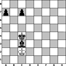 game notation in PGN-format [Event "Krampusturnier"] [Site "www.myChess.de"] [Date "2012.11.25"] [Round "1"] [White "Achimkogge"] [Black "Joschi"] [ECO "A00"] [WhitemyELO "1441"] [BlackmyELO "1597"] [Result "0-1"] [TimeControl "10/1728000"] [WhiteDays "18"] [BlackDays "20"] [MyChessNo "85156"] 1. c3 e5 2. e4 Nf6 3. Nf3 Nxe4 4. Nxe5 Qe7 5. d4 d6 6. Qe2 Bf5 7. g4 dxe5 8. gxf5 exd4 9. cxd4 Nc6 10. Be3 O-O-O 11. a3 Nxd4 12. Bxd4 Rxd4 13. h4 Qf6 14. Nc3 Nxc3 15. bxc3 Rd8 16. Qf3 Bc5 17. Rb1 Bb6 18. Be2 Rhe8 19. Rd1 Rxd1+ 20. Kxd1 Qd6+ 21. Kc2 Qxa3 22. Bc4 Qe7 23. Kb3 Kb8 24. h5 g6 25. f6 Qd7 26. Rd1 Qc8 27. Bxf7 Rf8 28. hxg6 hxg6 29. Bxg6 Qe6+ 30. Kb2 Bc5 31. Be4 Bd6 32. Bxb7 Rxf6 33. Qe3 Kxb7 34. Qxe6 Rxe6 35. Kb3 Rf6 36. Rf1 Rf3 37. Kc2 Bc5 38. Rb1+ Kc6 39. Rf1 Rxf2+ 40. Rxf2 Bxf2 41. Kb3 Kc5 42. Kc2 Kc4 43. Kb2 Be1 44. Kc2 Bxc3 0-1 position notation in FEN-format 8/p1p5/8/8/2k5/2b5/2K5/8 - - - 0 45 Captured white pieces: Captured black pieces: Click on a captured piece in order to display the desired move!