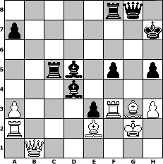 game notation in PGN-format [Event "Sweschnikow II"] [Site "www.myChess.de"] [Date "2012.04.28"] [Round "2"] [White "Naunhofer"] [Black "sprinterde"] [ECO "B33"] [WhitemyELO "1640"] [BlackmyELO "1708"] [Result "0-1"] [TimeControl "10/1728000"] [WhiteDays "20"] [BlackDays "20"] [MyChessNo "81316"] 1. e4 c5 2. Nf3 Nc6 3. d4 cxd4 4. Nxd4 Nf6 5. Nc3 e5 6. Nxc6 bxc6 7. Bd3 Bb4 8. Bd2 O-O 9. O-O Bb7 10. a3 Ba5 11. b4 Bb6 12. Na4 d5 13. Bg5 h6 14. Bh4 g5 15. Bg3 dxe4 16. Be2 Qe7 17. c4 Bd4 18. Ra2 e3 19. f3 Nh5 20. Be1 Rad8 21. Qb3 Nf4 22. Nc3 c5 23. Nd1 e4 24. Kh1 exf3 25. gxf3 f5 26. Nc3 g4 27. Nd5 Nxd5 28. cxd5 Kh7 29. Bc4 gxf3 30. Rxf3 Qe4 31. Kg2 Rxd5 32. bxc5 Rxc5 33. Be2 Qg4+ 34. Bg3 Bd5 35. Qb1 h5 36. h3 Qg8 0-1 position notation in FEN-format 5rq1/p6k/8/2rb1p1p/3b4/P3pRBP/R3B1K1/1Q6 - - - 1 37 Captured white pieces: Captured black pieces: Click on a captured piece in order to display the desired move!