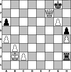 game notation in PGN-format [Event "Netzwerk Vulkaneifel"] [Site "www.myChess.de"] [Date "2021.11.05"] [Round "1"] [White "boeserWatz"] [Black "borsti"] [ECO "C20"] [WhitemyELO "1295"] [BlackmyELO "1326"] [Result "1-0"] [TimeControl "10/1728000"] [WhiteDays "20"] [BlackDays "20"] [MyChessNo "123389"] 1. e4 e5 2. b3 Bb4 3. a3 Ba5 4. Bb2 d6 5. Bc4 Nf6 6. Nf3 Bg4 7. h3 Bh5 8. Qe2 a6 9. Ng5 O-O 10. g4 Bg6 11. Nc3 Nc6 12. Nd5 h6 13. Nxf6+ Qxf6 14. Nf3 Rfe8 15. O-O-O Rad8 16. Qe3 Bb6 17. Qe2 Nd4 18. Nxd4 Bxd4 19. Bxd4 exd4 20. f3 Qf4 21. Bd3 d5 22. Rde1 Rd7 23. Qh2 Qxf3 24. Rhf1 Qxf1 25. Bxf1 dxe4 26. d3 e3 27. h4 h5 28. g5 c5 29. Bg2 Rde7 30. Bf3 b6 31. Bc6 Rd8 32. Re2 Bf5 33. Bf3 g6 34. a4 Re6 35. Qc7 Rde8 36. Bc6 R8e7 37. Qxb6 Bg4 38. Re1 Kg7 39. Qxc5 Rc7 40. Qxd4+ Kh7 41. Be4 e2 42. Qd8 Rec6 43. d4 Rd7 44. Qe8 Rcd6 45. d5 Rd8 46. Qxf7+ Kh8 47. Bxg6 Rxg6 48. Qxg6 Rxd5 49. Qe8+ Kg7 50. Rxe2 Bxe2 51. Qxe2 Rf5 52. Qe6 Rf1+ 53. Kb2 Rh1 54. Qf6+ Kg8 55. g6 Rh2 56. Qf7+ 1-0 position notation in FEN-format 6k1/5Q2/p5P1/7p/P6P/1P6/1KP4r/8 - - - 2 56 Captured white pieces: Captured black pieces: Click on a captured piece in order to display the desired move!