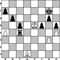 game notation in PGN-format [Event "Der Mann mit dem Goldenen Colt"] [Site "www.myChess.de"] [Date "2010.08.18"] [Round "1"] [White "paul"] [Black "Robur"] [ECO "B02"] [WhitemyELO "1266"] [BlackmyELO "1838"] [Result "0-1"] [TimeControl "10/3456000"] [WhiteDays "118"] [BlackDays "101"] [MyChessNo "67713"] 1. e4 Nf6 2. Nc3 d5 3. Qf3 dxe4 4. Nxe4 Nxe4 5. Qxe4 Nd7 6. Nf3 Nf6 7. Qd3 Qxd3 8. Bxd3 b6 9. O-O Bb7 10. Be2 e6 11. d3 Be7 12. c4 c5 13. b3 O-O 14. Bb2 Rad8 15. Bxf6 Bxf6 16. Rad1 Rd7 17. Rd2 Rfd8 18. Rfd1 Bxf3 19. Bxf3 Bg5 20. Re2 Rxd3 21. Rxd3 Rxd3 22. Rc2 Kf8 23. h3 g6 24. Be2 Rd4 25. g3 f5 26. f4 Bf6 27. Kf2 h5 28. h4 e5 29. fxe5 Bxe5 30. Rc3 Rd2 31. Re3 Bd4 32. a4 Rb2 33. Kf3 Bxe3 34. Kxe3 Rxb3+ 35. Kf4 Kg7 36. Bd1 Rb4 37. Ke5 Rxc4 0-1 position notation in FEN-format 8/p5k1/1p4p1/2p1Kp1p/P1r4P/6P1/8/3B4 - - - 0 38 Captured white pieces: Captured black pieces: Click on a captured piece in order to display the desired move!